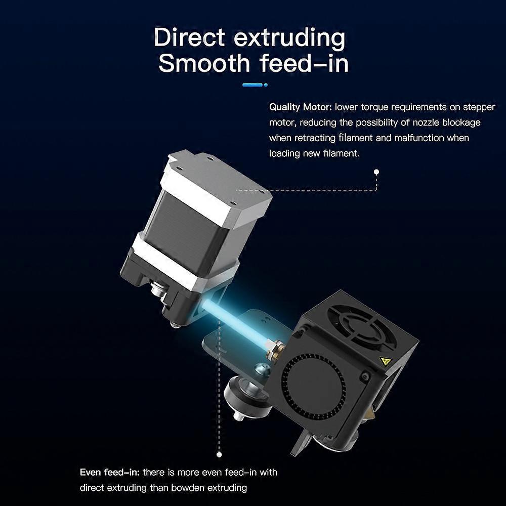 1、Direct extruding kit, smooth feed-in. Equipped with high quality stepper motor, reducing the possibility of nozzle blockage. 2、All metal structure, durable and wear resistant. Full assembled, easy to install. 3、Compatible with more types of filament when printing under high temperature, like flexible TPU. 4、Includes a 0.4 nozzle, 2 cooling fans, a backplate, a stepper motor, etc. 5、A great accessory for Ender-3 Series 3D Printer.