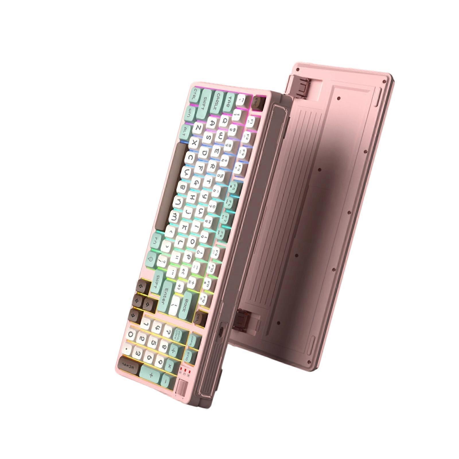 Ergonomic Cord Computer Keyboards 97Key Compact Layout AntiGhosting RGBs Effects Volumes Control Knob For Desktop PC Pink