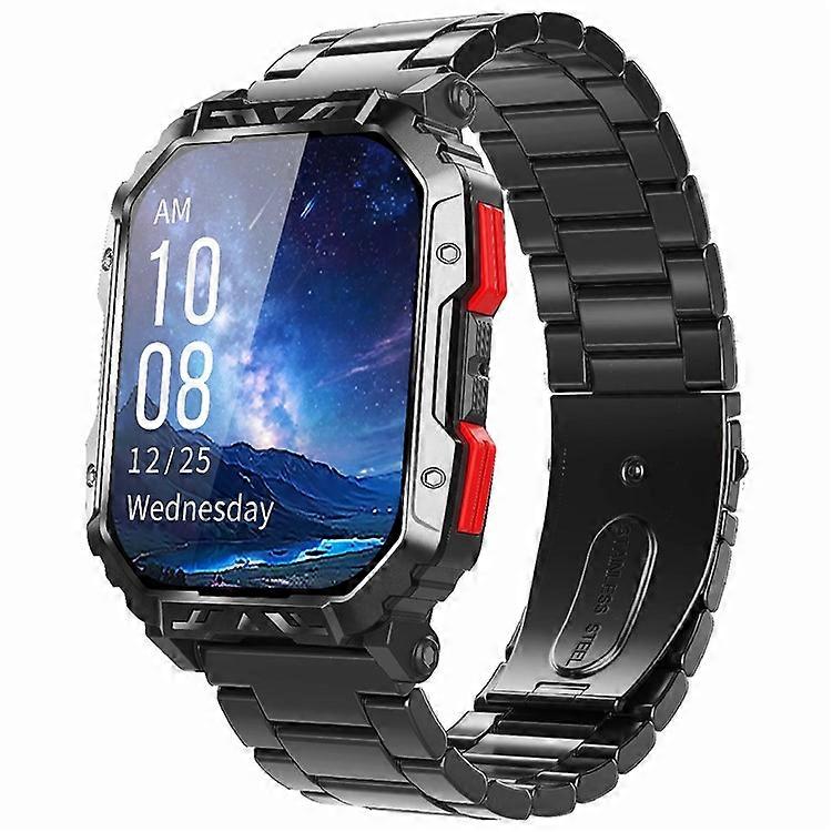 F407 Outdoor Waterproof Rugged Smart Watch Blood Sugar Heart Rate Monitor with Steel Strap
