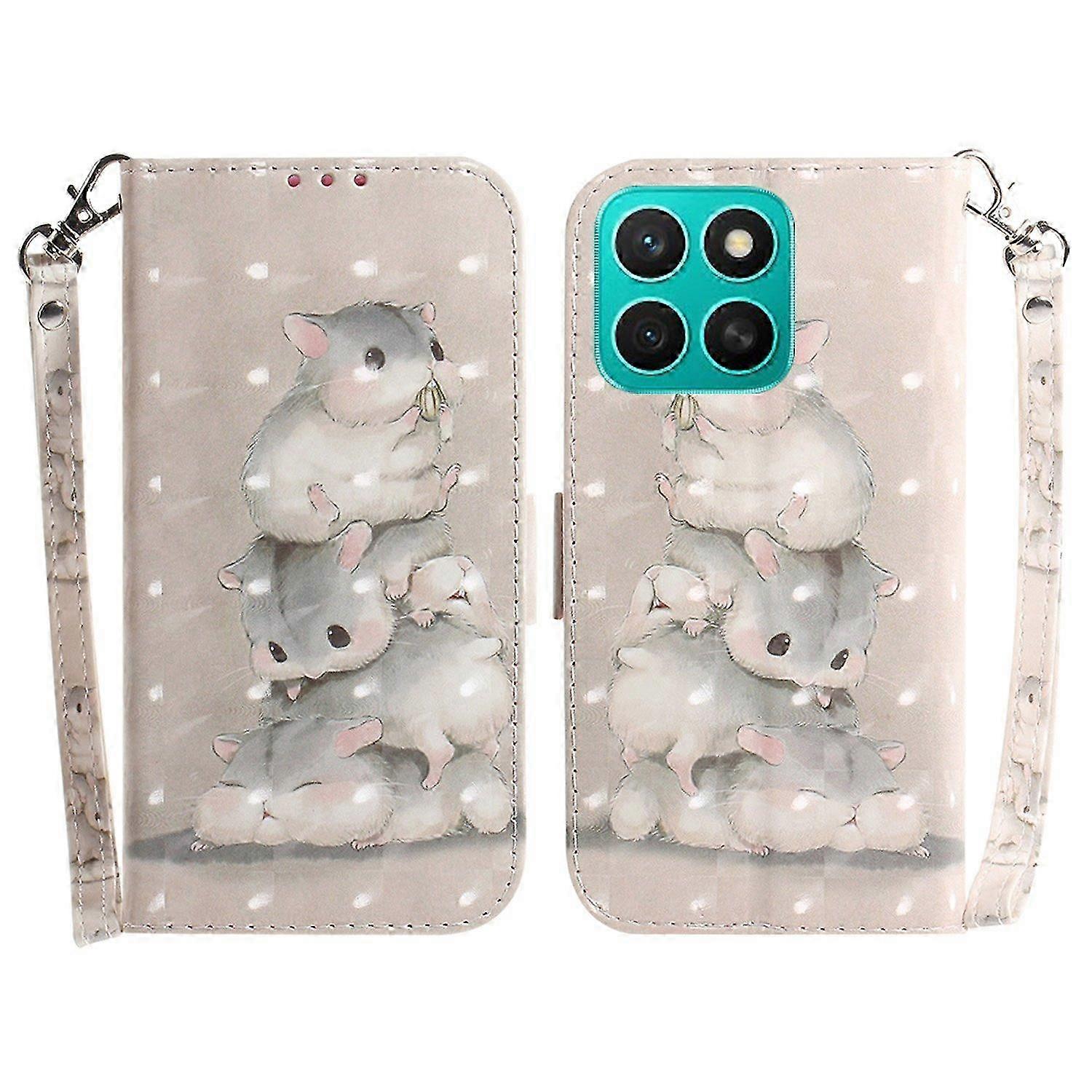 For Honor X8c 4G Phone Case with Patterned Leather and Wrist Strap - Stacking Squirr Design