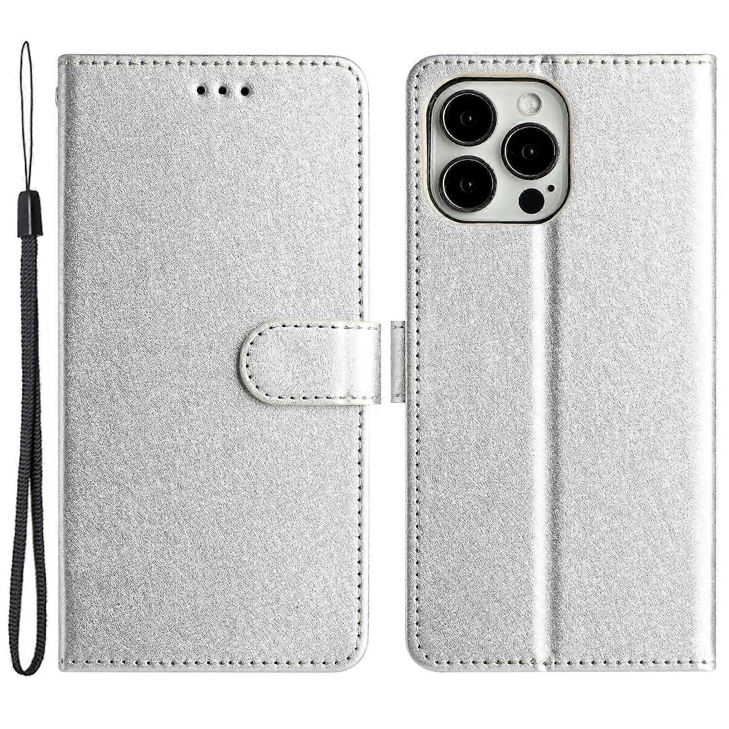 For iPhone 15 Pro Leather Wallet Stand Phone Cover Silk Texture Shockproof Case