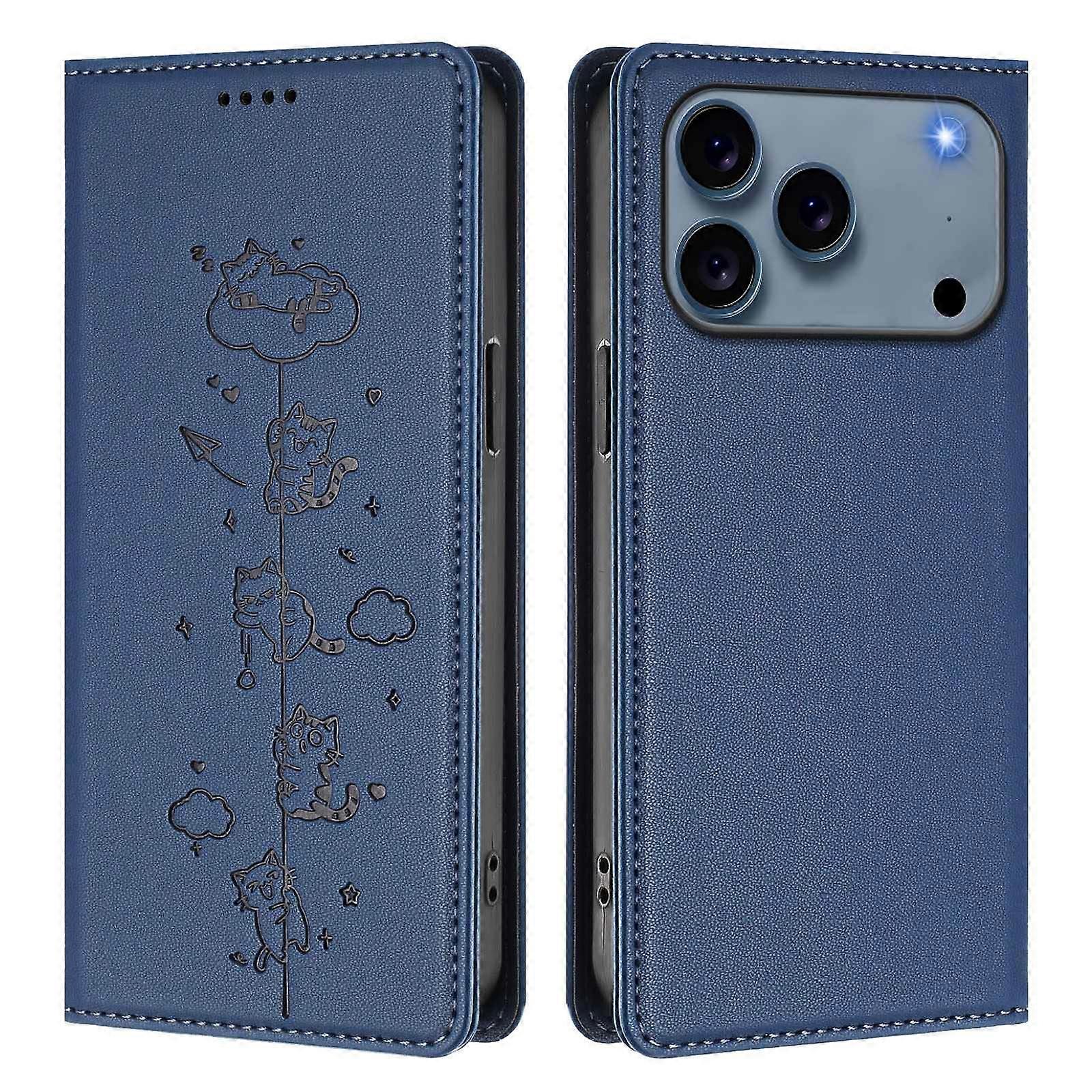 For iPhone 17 Pro Max Case RFID Blocking Wallet Stand Imprinted Cat Pattern Leather Phone Cover