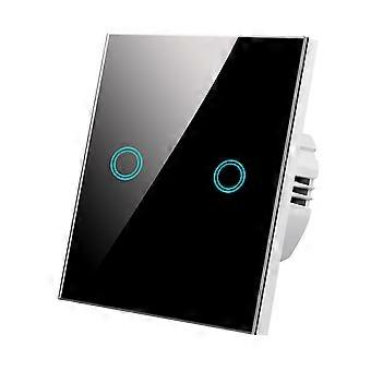 for Touch Switch with LED Indicator for Smart Wall Light Switch with Tempered Glass Panel EU Standard 1/2/3 Gang 1 Way 2 Black