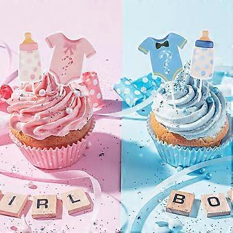 GaiBoSi12pcs Boy or Girl Cupcake Toppers Glitter Onesie Jumpsuit Baby Shower Kids Birthday Gender Reveal Party Cake Decorations Supplie