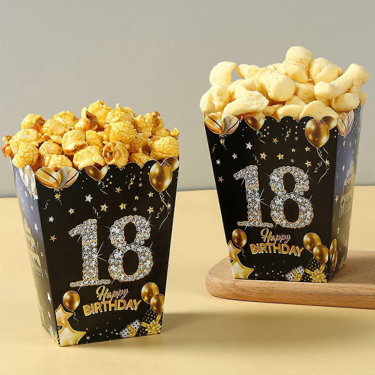 GaiBoSi6pcs Birthday Paper Popcorn Box Black Gold Party Favor Treat Box for 18 21 30 40 50 60 Years Old Aldult Birthday Party Suplies
