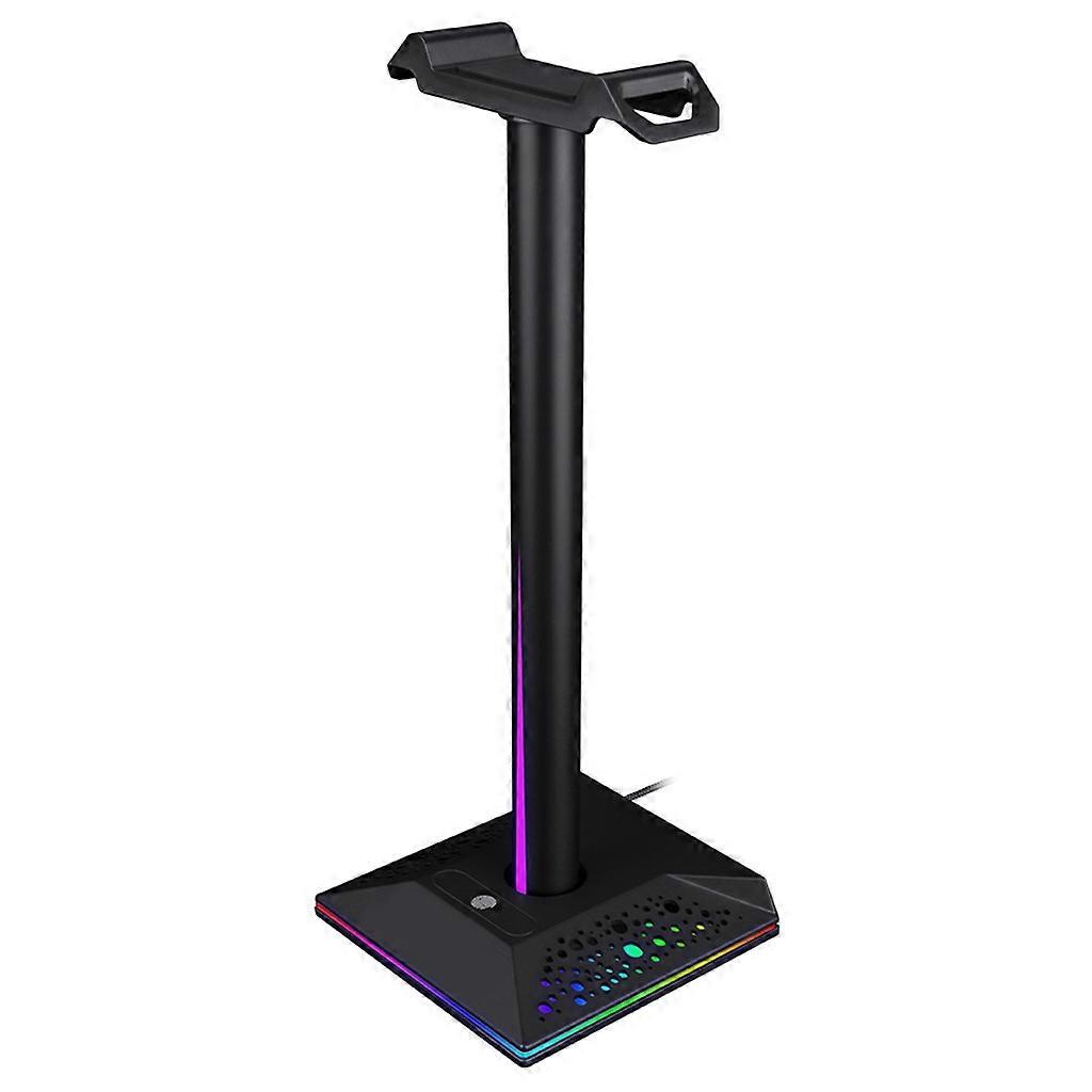Features: brand new and high quality Compatible: Most kinds of high-end earphone headsets , protect your headphone from dropping, scratch, crushing, scratch, etc . Design: This wireless headset stand with unique and stylish design, great for home, office, studio, bedroom or next to your TV. Detachable Design: Combined with three parts, fast to detach it when not in use, put it in your drawer, book shelf, etc, or bag when travelling, with small space taken only. Easy to Carry: It is super easy to bring along wherever you go. It's small, light, and unique fashion style. Sturdy: Made of high quality ABS material support to provide a safe and stable foundation for your headphones. Specifications: Product name:RGB Headphone stand With 2 USB2.0 HUB and 3.5mm Port Luminous function introduction Tap the for touch for key to switch the light mode: default light-streamer M1: Streaming horse racing/M2: Monochrome loop M3: Colorful gradient/M4: Red light M5: Green light/M6: Blu-ray M7: Purple light/M8: Cyan Light M9: Yellow light/M10: white light M11: Long press for three seconds to turn off Material: ABS Color: Black Product Dimension: approx. 28.1x11x11cm/11.06x4.33x4.33inches Net Weight: 291g/0.64lbs Note: Please allow 1-2cm errors due to manual measurement. Due to the difference between different monitors, the picture may not reflect the actual color of the item. Package includes: 1PC RGB Head-Mounted Headphone Stand