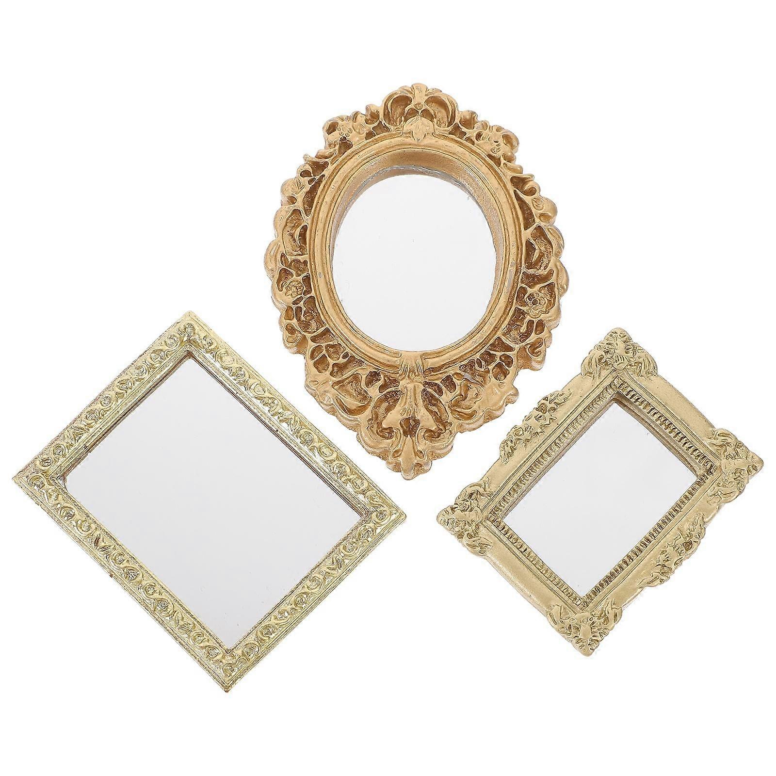 Golden Miniature Mirror Set of 3 Decorative Plastic Mirrors for Home Use and DIY Projects