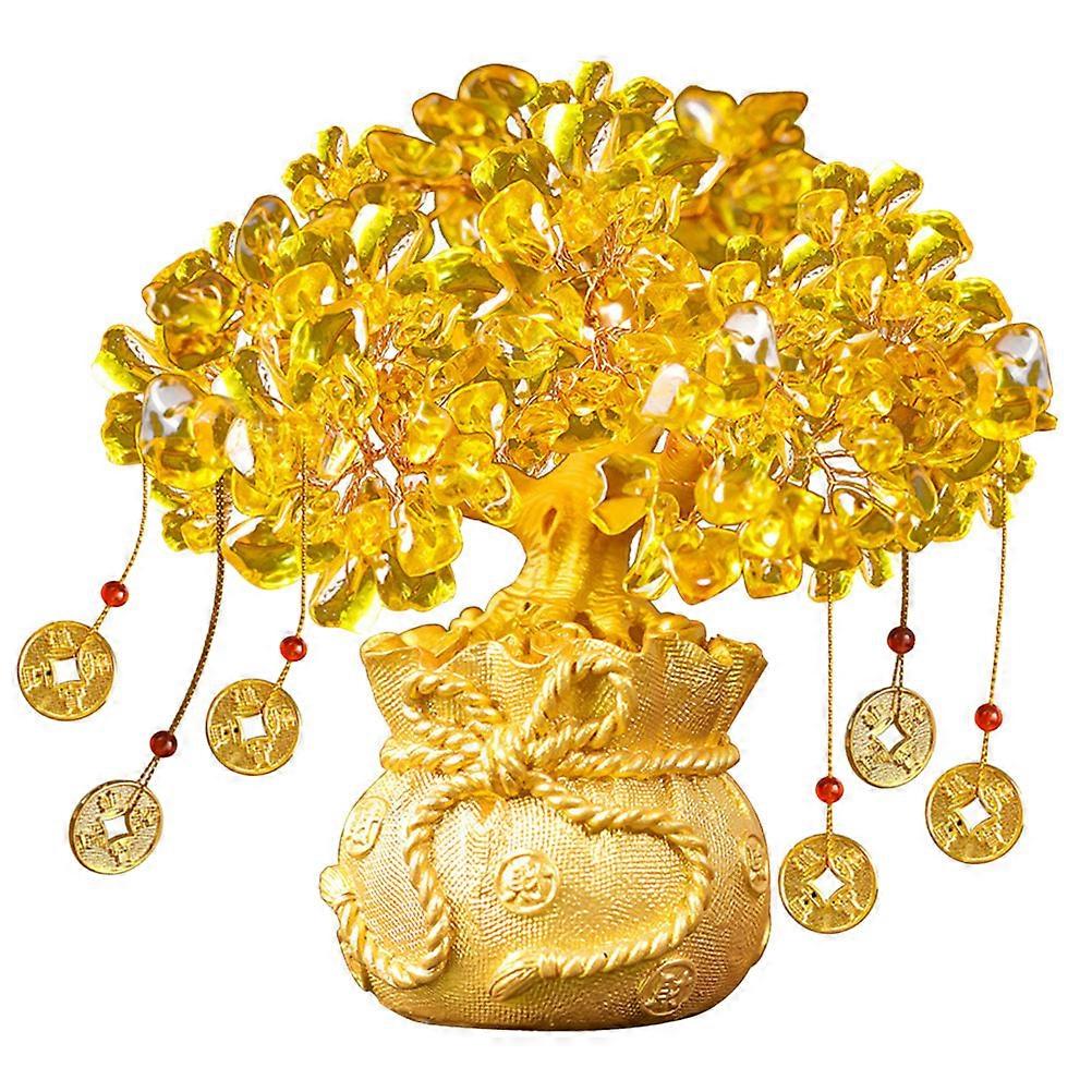 Golden Money Tree Statue for Decor Resin Craft Desk Fortune Tree