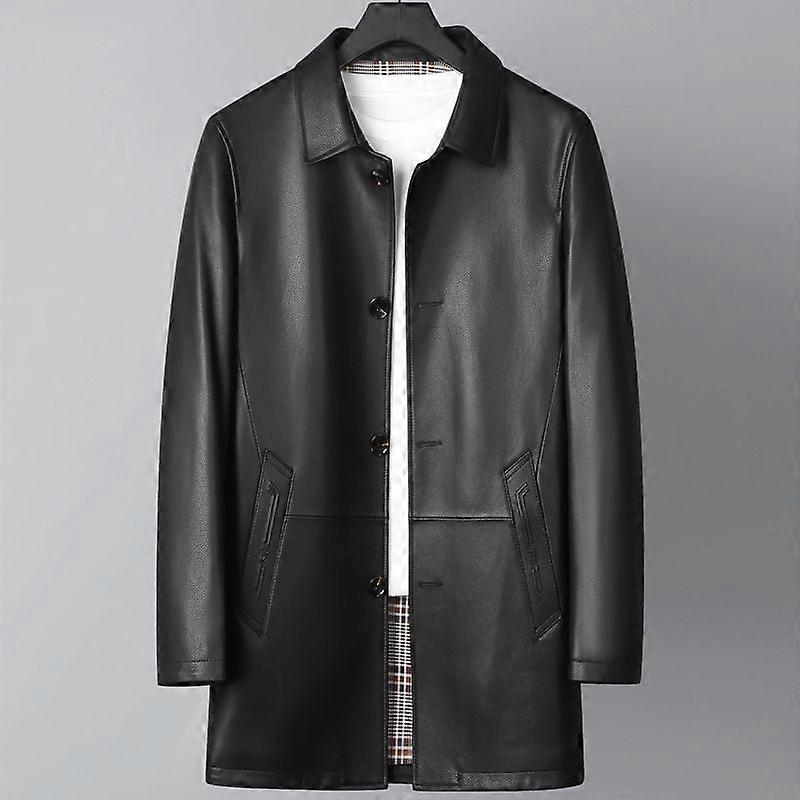 Haining Genuine Leather Clothes Men's First Layer Sheepskin Mid-Length Leather Jacket Business Casual Autumn Coat Thin