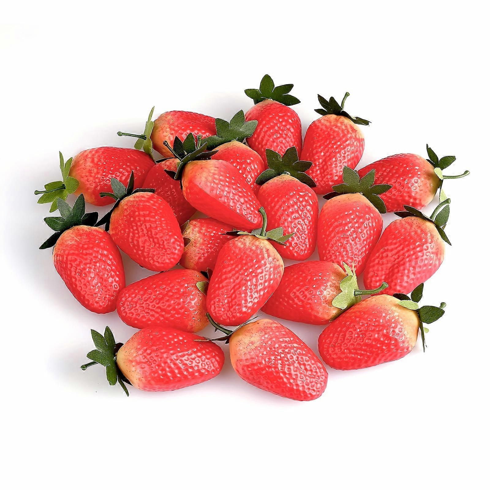 HaKeLai 6pcs Artificial Strawberries Lifelike Red Realistic Plastic Strawberries Artificial Fruit For Home Kitchen Party Decoration