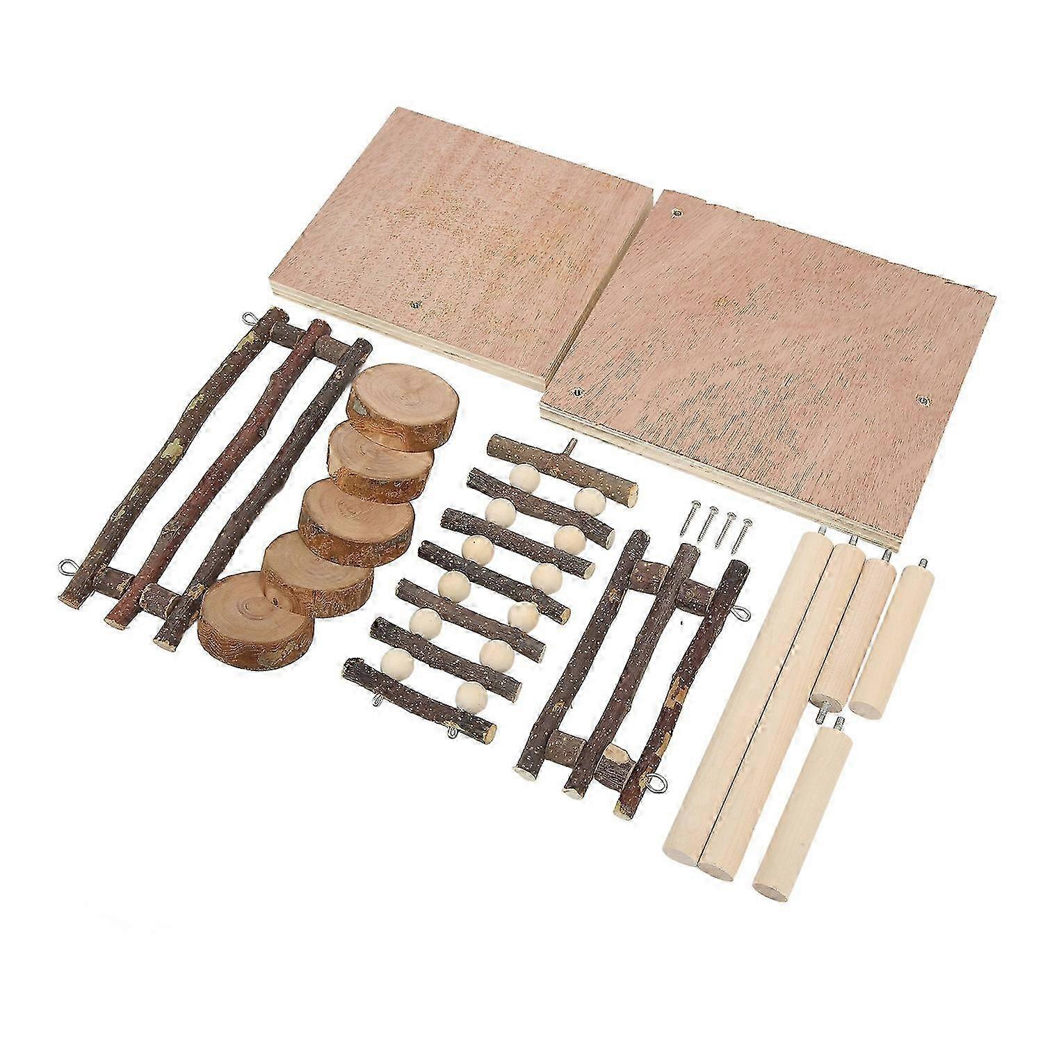 Feature: 1. Premium Material: The small pet wooden platform is made of natural and safe apple wood, composite board and birch materials, safe and healthy, durable and long lasting. 2. Be Good for Health: The hamster climbing platform is full of woody fragrance and loved by pets, pets can chew and take natural vitamins. 3. Ladder and Platform Design: The design of the platform with climbing ladders and steps can help pets climb for better exercise. 4. Base Design: The base with stand can be used as a shelter for small pets, making it more convenient and practical. 5. Simple Installation: Equipped with fixed accessories, easy to install, can be manually installed, suitable for small rodents pet. 6. A Good Place for Small Pets: The hamster stand platform is great for pets to play, entertain and exercise, and helps small animals fight boredom, anxiety and release stress. Specification: Item Type: Hamster Stand Platform Toys Material: Apple Wood, Composite Board, Birch Wood Size: Approx. 40x18x23cm / 15.7x7.1x9.1in Use: Small Pet Hamster Two Layer Climbing Ladder Platform . Package List: 1 x Small Platform 1 x Large Platform1 x Small Fence1 x Large Fence2 x Long Support Bar2 x Short Support Bar 1 x Connection Bar1 x Climbing Ladder 1 x Step Ladder4 x Screws Note: Manual measurement, please allow some error.