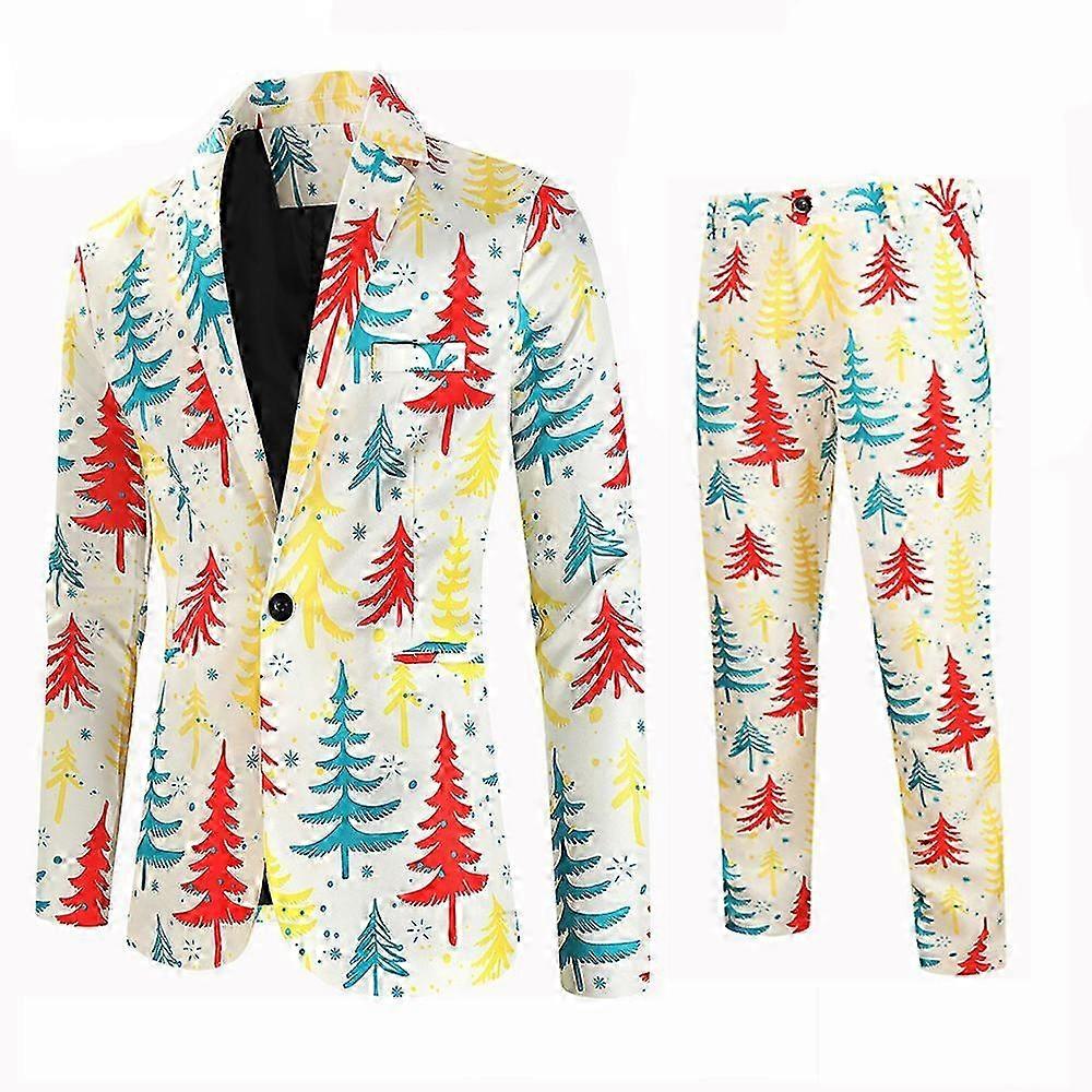 HOT Men's Christmas Suit 2 Piece One Button Jackets Pants Casual Business Male Blazer Ugly Funny Xmas Snowman Printed Sets