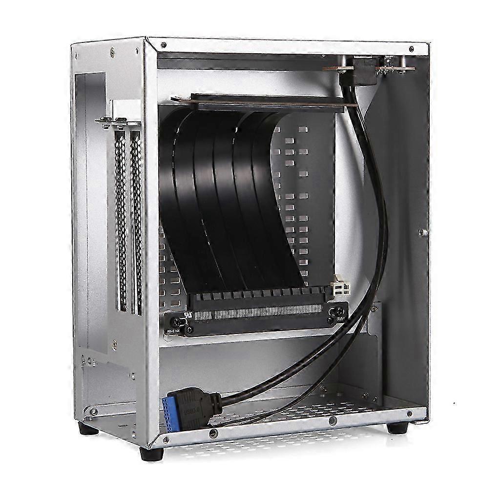 Features:brand new and high qualityCompatible hard drive: 2.5 inch SSD x 2 (not included) (thickness less than 9mm).Easy to use, simple atmosphere.Fast heat dissipation, effective temperature control, stable operation of the system.Multi purpose, business office, design and drawing, online games, online learning.Small size design, volume is only 110 of the traditional chassis, easy to carry.Specifications:Color: silverMaterial: Aluminum alloySize: approx. 223x184x104mm8.78x7.24x4.09inVideo card length limit: 17cm6.69in (not included)Power support: small 1U (not included)Note:No retail package.Please allow 0-1cm error due to manual measurement. pls make sure you do not mind before you bid.Due to the difference between different monitors, the picture may not reflect the actual color of the item. Thank you!Package includes:1PC x Mini ITX for case1PC x extension cable