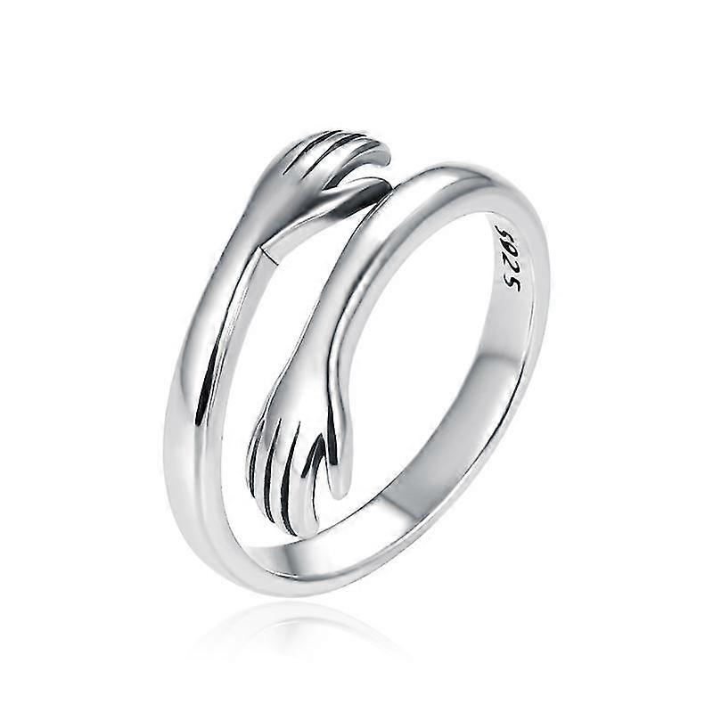 Hug Ring Sterling Silver Adjustable -Plated Couple Hug Ring Hugging Rings for Women Mens Wedding Band Rings Wrap Around Rings Hand Ring Jewelry for Te SILVER ADJUSTABLE HUGGING RING - Surrounded by double hugging hands meaning "give me a hug", this hugging ring is a symbol of beauty and the warmest of love. Since the ring has an open design, it is very flexible and can be adjusted by squeezing or opening slightly when you want the perfect fit. This is the perfect design to gift your lover, family, best friend or even yourself on any holiday and anniversary. 925 Sterling Silver, Lead and Nickel Free, Hypoallergenic and Allergic, Suitable for Sensitive Skin, Silver Adjustable Hug Bracelet, Wearing 925 Sterling Silver will prevent allergies and keep you safe if you wear it for a long time. Silver Adjustable Hug Ring The perfect gift for Mother's Day, Thanksgiving, Birthday, Christmas, Halloween and all kinds of anniversaries.