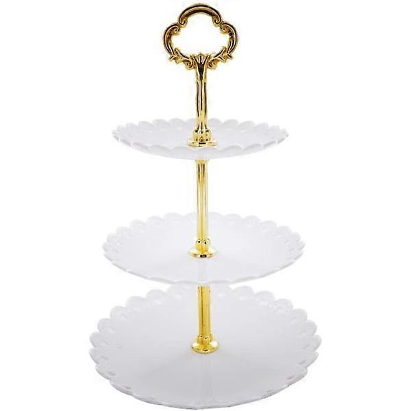 IC 3-Story Cupcake Stand, Cheese Tray Cupcake Dessert Stand, Metal White
