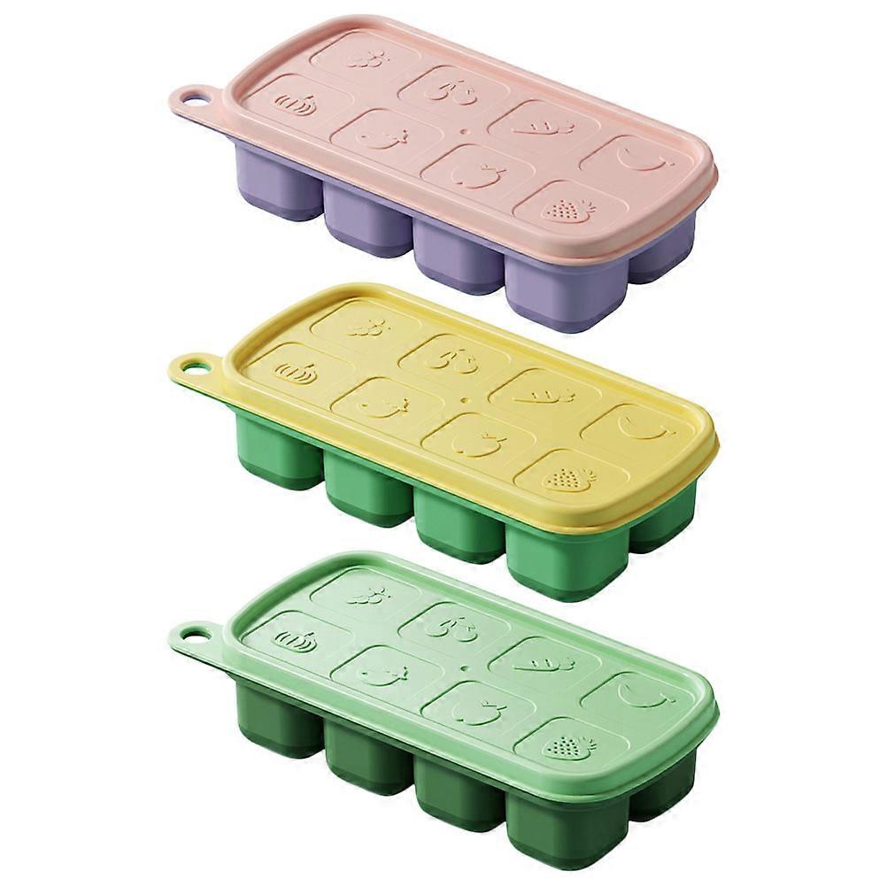 Ice Cube Maker Tray 3Pcs Kitchen Tool Assorted Color Lidded Design Removal Ice Making