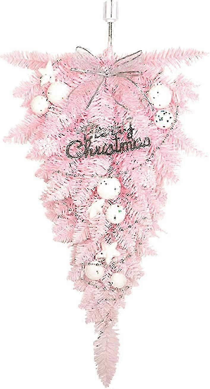 Ifeng Pink Artificial Christmas Teardrop, 23.6in Christmas Swag With Bow & Balls, Christmas Teardrop Wreath Teardrop Door Swag For Christmas Home Deco