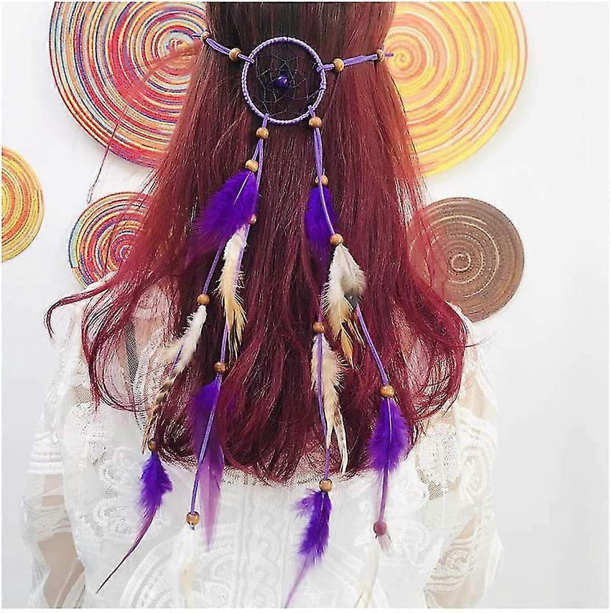 Indian Peacock Feather Headbands Boho Princess Head Chain Bule (B)