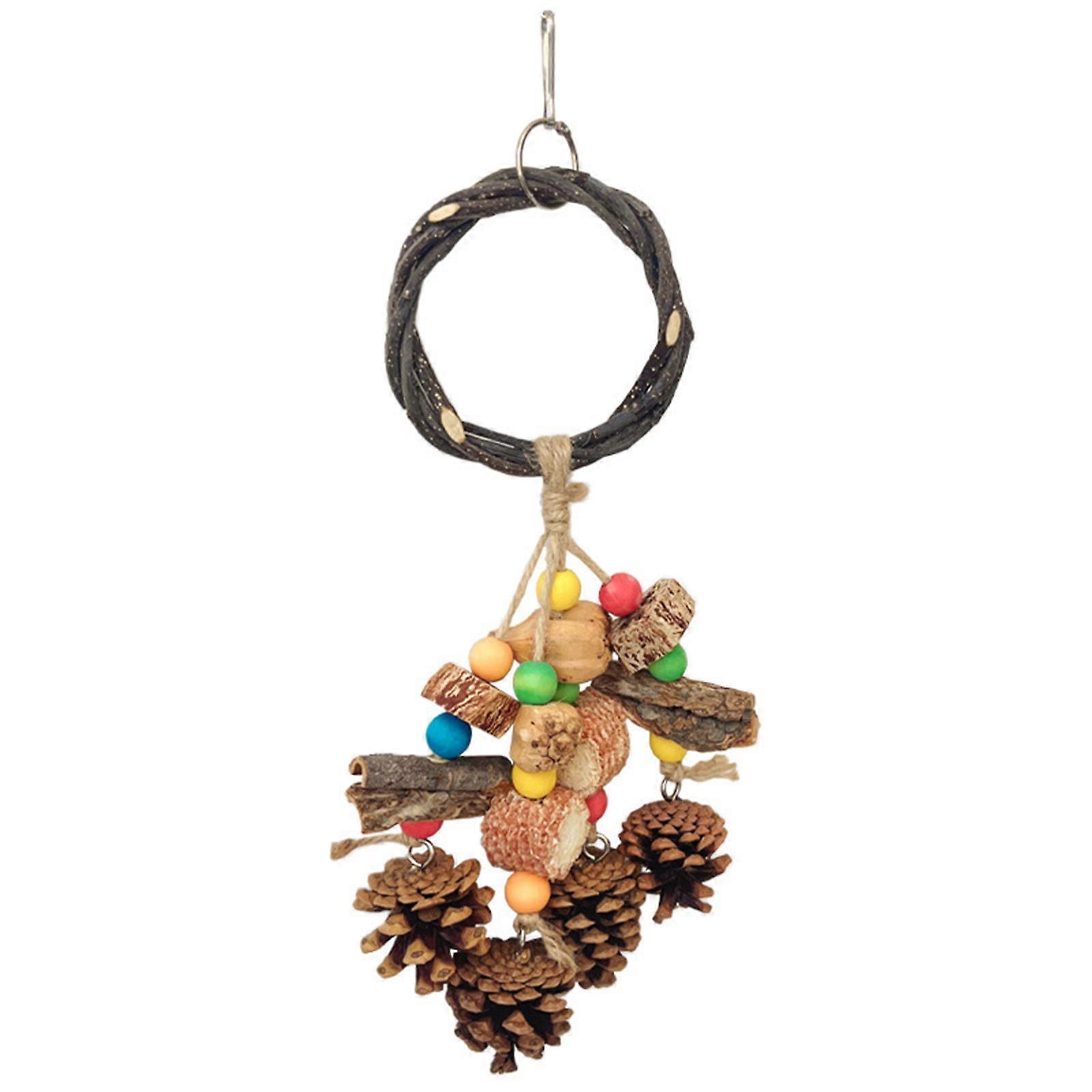 Interactive Wooden Bird Toy With Swing Chew Climbing Features Colorful Beads For Parrots And Pet Multicolor