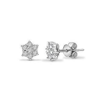 Jewelco London Solid 18ct White Gold Pave Set Round G SI1 2ct Diamond 7 Stone Cluster Stud Earrings