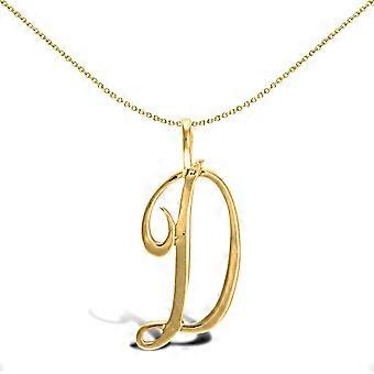 Jewelco London Solid 9ct Yellow Gold Script Identity Initial Pendant Letter D