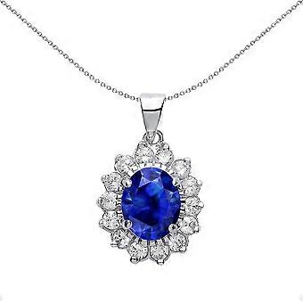 Jewelco London Ladies Sterling Silver Sapphire-Blue Oval Cubic Zirconia Lady Di Pendant Necklace 18 inch
