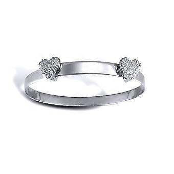 Jewelco London Girls Solid 9ct White Gold White Round Brilliant Cubic Zirconia Love Hearts Expanding Baby Bangle Bracelet