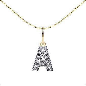 Jewelco London Solid 9ct Yellow and White Gold Cubic Zirconia 10mm San Serif Block Font Initial Charm Pendant, Letter A