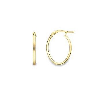 Jewelco London Ladies 9ct Yellow Gold Square Tube Polished Oval Hoop Earrings 18mm