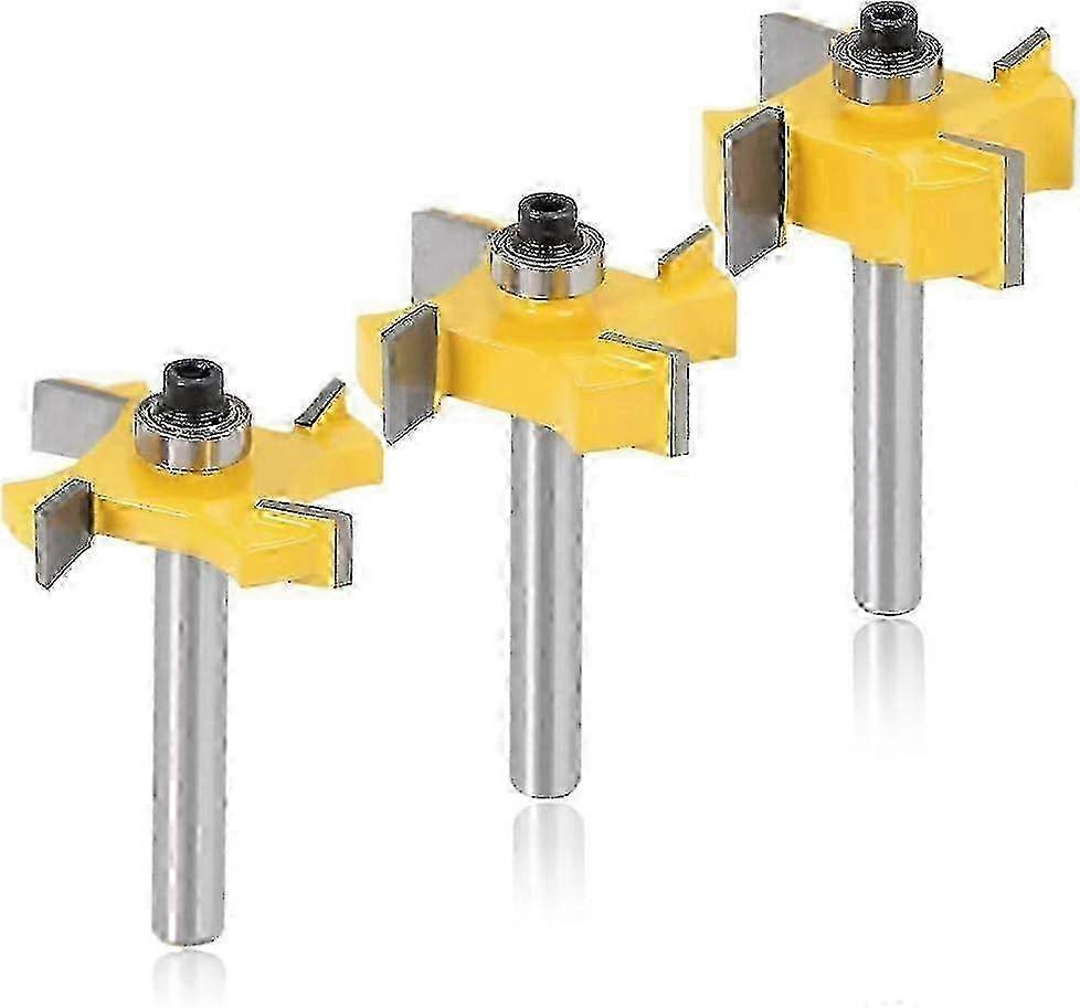 JiaWei 3 Piece 4 Wing Slot Mill Set, 1/4 Slot Mill with Bearing Shank Wood Slotters Wood Slotters Tools - J7A