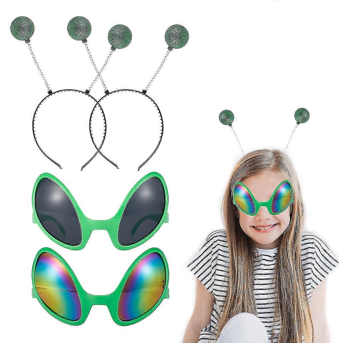 Jtween 2pcs Alien Glasses With Antenna Headband For Adults And Kids Funny Alien Glasses Boppers Kit Funny Antenna Headband Set Reusable Alien Cost Yj5