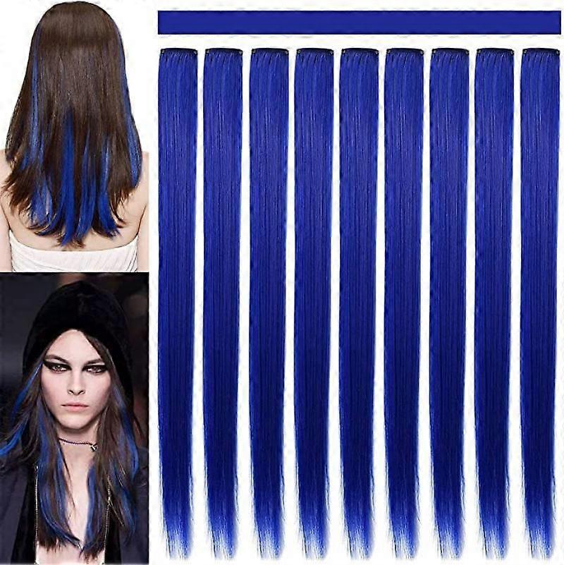 JUSCH 9PCS 21" Colored Clip in Hair Extensions Blue Hair Extensions for Kids Girls Clip in Blue Hair Clips Hair Extensions for Kids Party Highlights (
