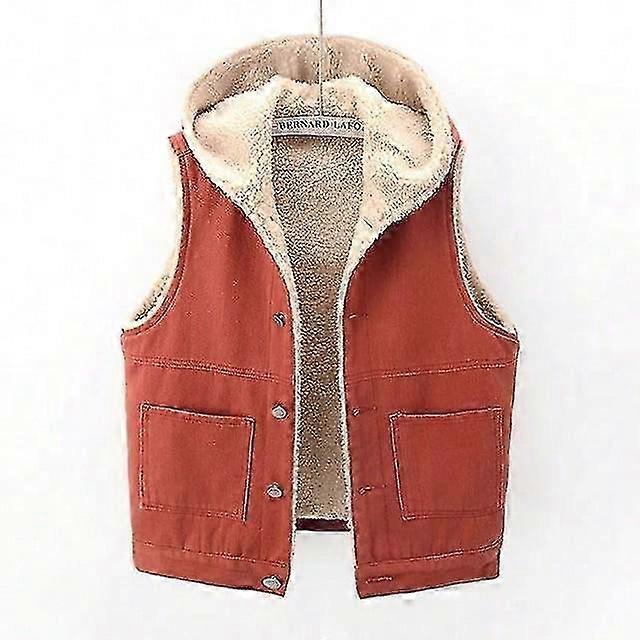 Jwl-solid Color Hooded Faux Cashmere Denim Vest Women Autumn Winterr Fleece Liner Warm Waistcoat Casual Loose Jean Sleeveless Jackets