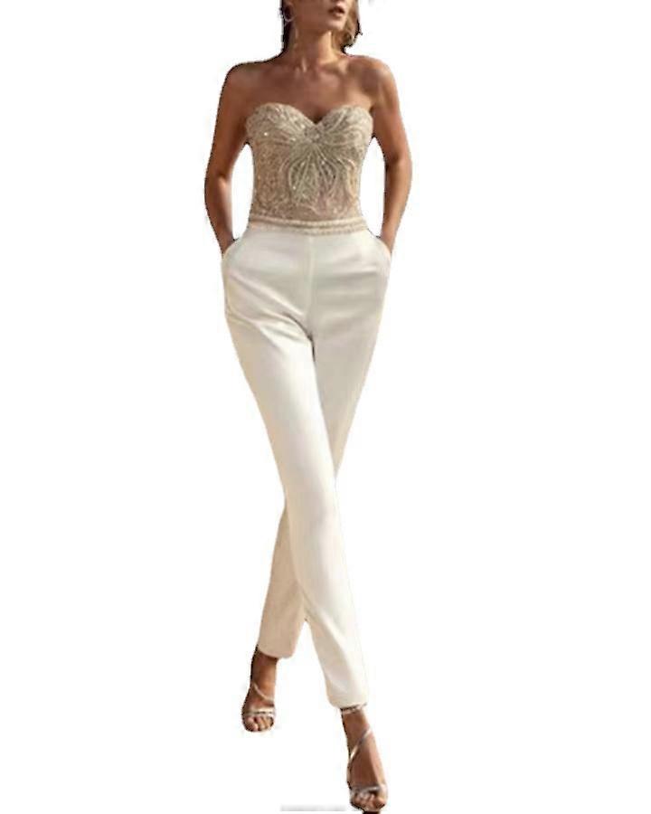 JWL- Summer Women Sequins Embroidery Jumpsuits Sexy Elegant Sleevelless Strapless Backless Rompers Female Night Clubwear Overalls