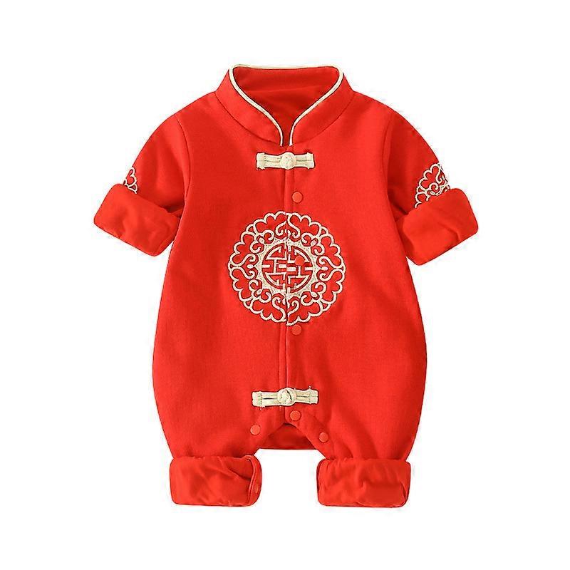 JWL-Chinese Traditional Jumpsuit For Girls Newborn Baby butterfly HHanfu Red Tang Suit Romper Chinese New Year Outfits Birthday
