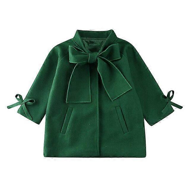 JWL-2-8Y Kids Girls Coats Baby Autumn Winter Clothing Solid Color Bow Neck Long Sleeve Loose Trench Windbreaker Children Outerwear