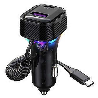 K8 USB+Type-C Dual Port QC3.0 Fast Charging Car Charger with Type-C Cable Compatible For Huawei / iPhone