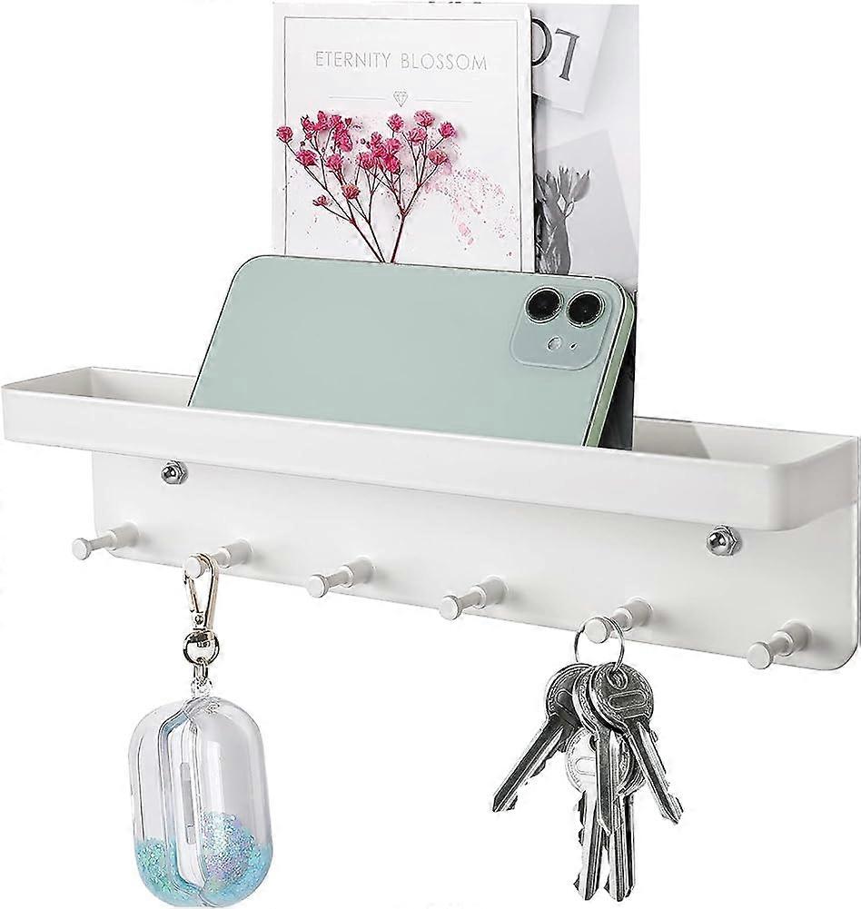 Key rack with shelf, 6 hooks self-adhesive wall key holder, small key hook
