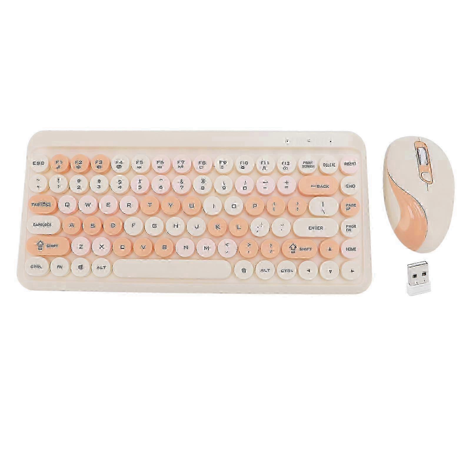 Keyboard and Combo, 2.4G Colorful Retro Round Keycap Keyboard and Set, Computer Cordless Keyboard and for Laptop PC (Orange)