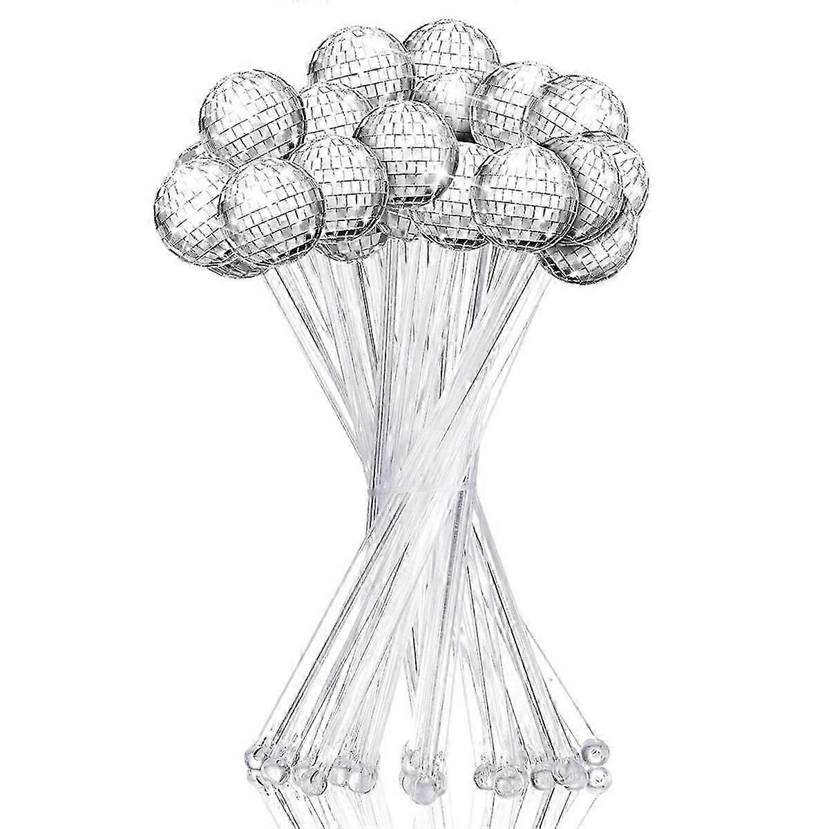 KINCJON 24 Pcs Disco Balls Cocktail Stirrers Plastic Round Top Swizzle Sticks Cake Mirror Ball for Home Bar Coffee Shop Use