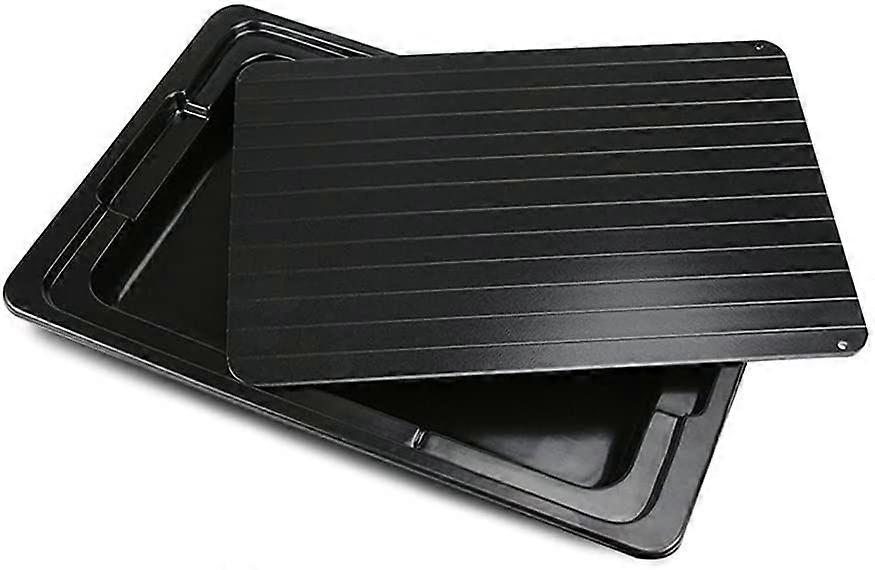 Description Product Description [Safety and odorless thawing master] Passed FDA certification, thawing is safe. Ensure that when the food is thawed, the thawing tray will not emit any peculiar smell and will not damage the food. Safe and reliable. [Slotted thawing tray] Food will release water and carbon dioxide during the thawing process, and these released substances can flow out through the groove of the thawing tray. Will not accumulate to spoil food. So as to ensure the nutrition and taste of the food. [Suitable for a variety of foods] You can defrost any food you want to defrost. You can also thaw various foods together. Including meat, beef and burger patties. [Quick defrosting non-stick plate] Put a little warm water under the thawing plate, and place the food on the thawing master to accelerate the thawing of the non-stick plate, which is very convenient. [Easy to clean the thawing tray] Just wipe the surface gently with a cleaning cloth, and then rinse it off with water. No need to use other auxiliary tools. Features: 1. Quick and easy: With this thawing tray, you will defrost frozen food 8 times faster than at room temperature. Most frozen foods can be thawed in just 30-60 minutes. No electricity, microwave oven or hot water is required. 2. Unique design: This product is equipped with a drip tray, which can catch all the liquid dripping from thawed food, which is more convenient for our daily use. Moreover, the drip tray also has a non-slip function to prevent the tray from sliding over the workbench. 3. Safe and convenient: The thawing tray is made of food-grade aluminum, and the frozen food is thawed by ecologically transferring heat from the ambient temperature to the contact area of the frozen food, so as to keep the texture and taste unaffected. 4. Easy to clean: Both our defrost tray and drip tray use non-stick surfaces, and it is very easy to clean under running water with our extra silicone sponge. At the same time, the product can also be used in dishwashers. 5. Healthy and durable: The defrosting tray is made of food-grade aluminum, the coating does not fall off during cleaning, and the service life is long. Suitable for all types of frozen meat. Specification: Material: Aluminum Size: 29.5 x 20.5 x 0.2cm Color: as shown in the picture Include: 1 x Defrost board