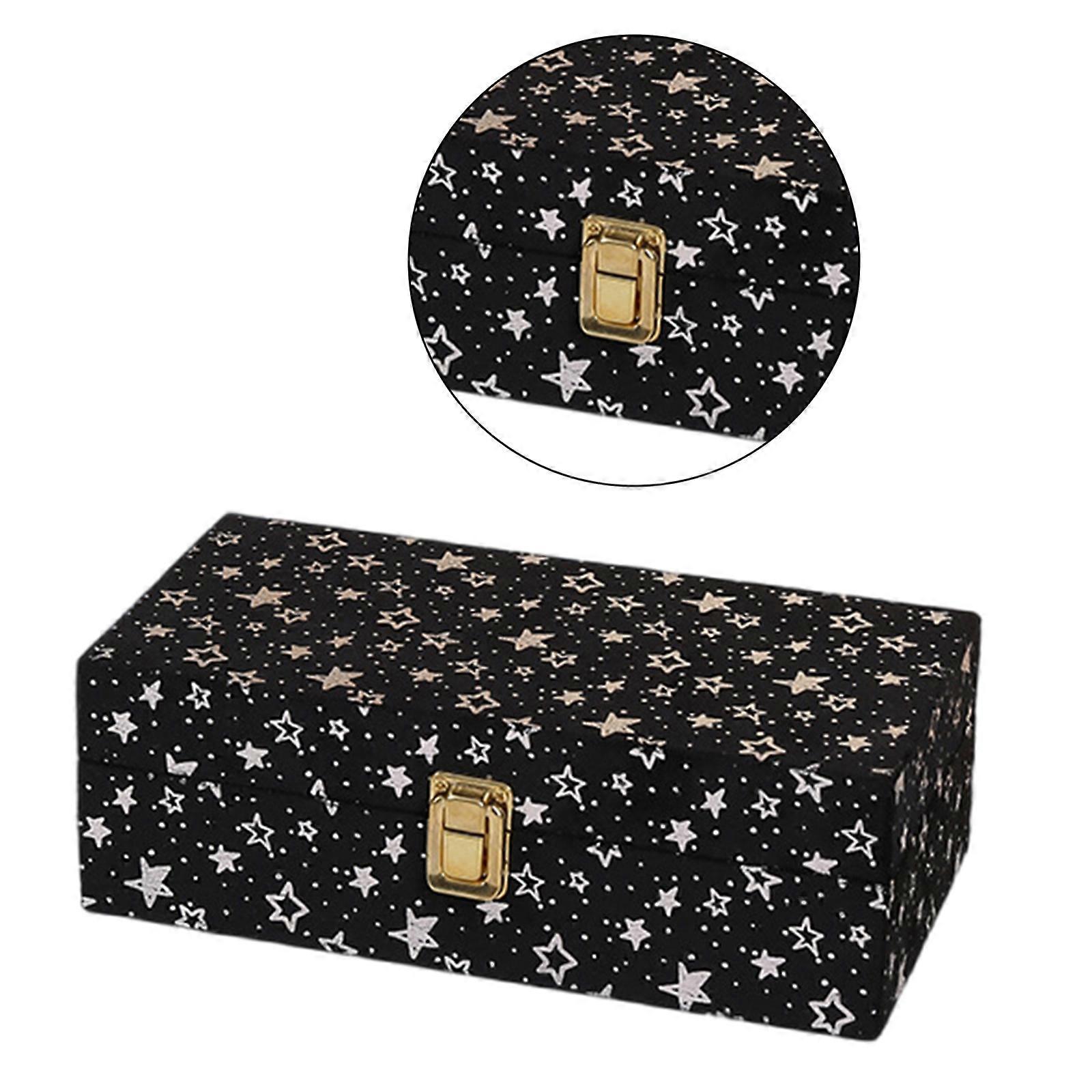 Large Capacity Organizer Wood Storage Case with Soft Lining Delicate Star Pattern Container Case S