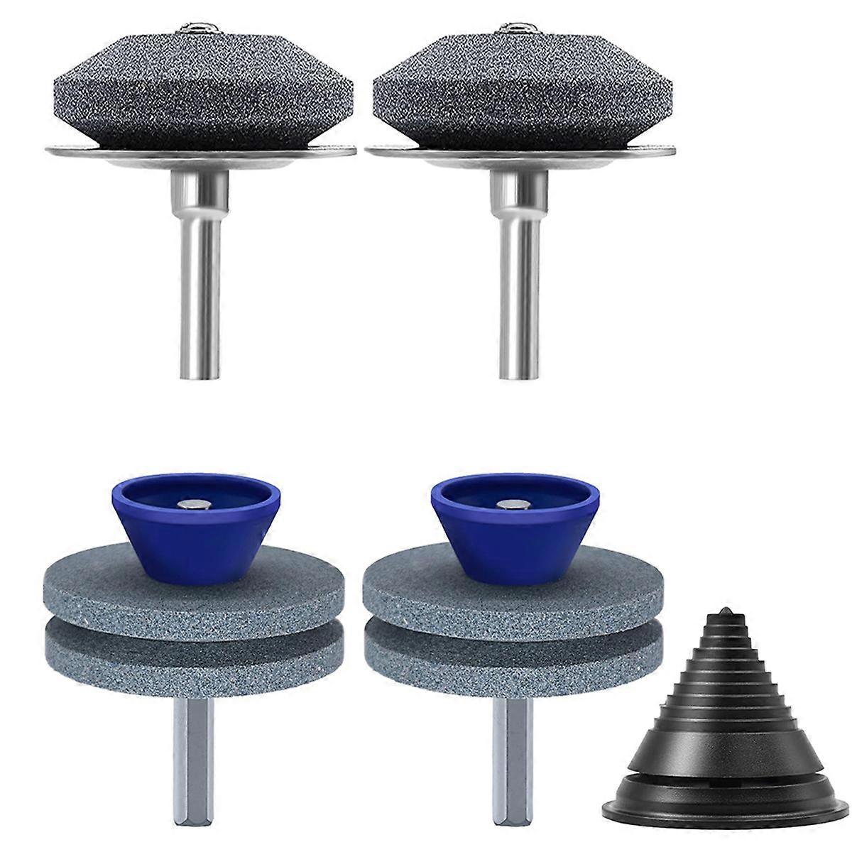 Lawn Mower Blade Sharpener for Drill, 4PCS Mower Blade Sharpener with Blade Balancer, Wear Lawnmower Blade Sharpener A