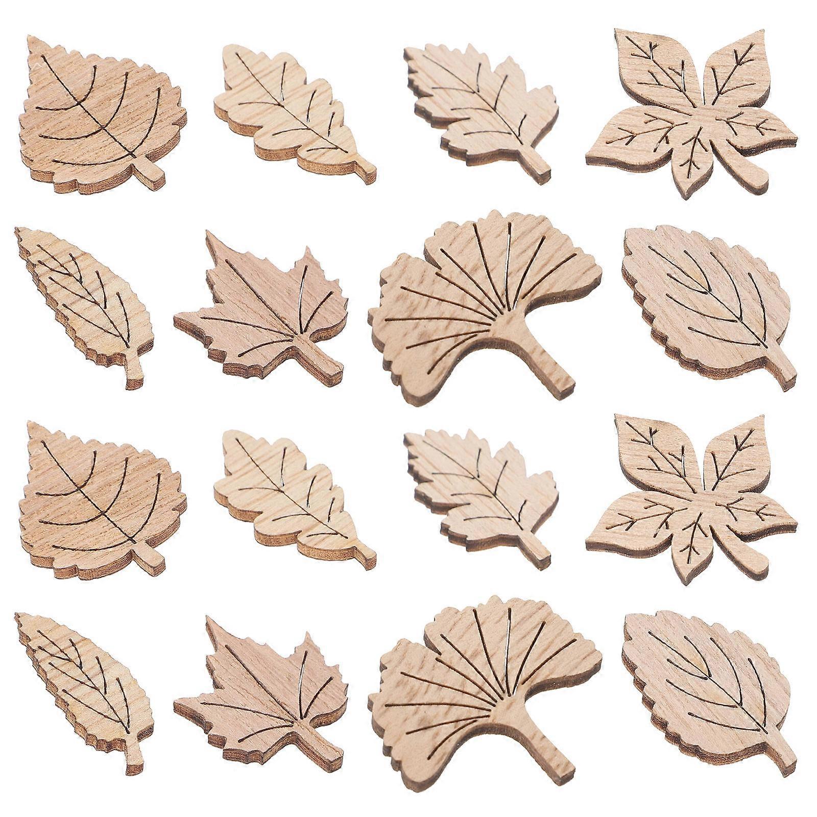 Leaf Pattern Wood Chip Beige for Decoration 100Pcs Multi-Use Scrapbooking