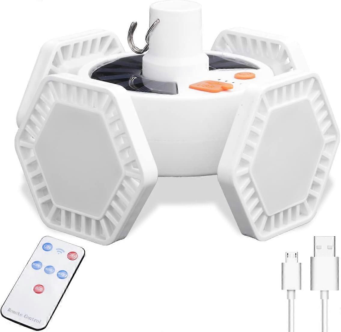 LED Solar Camping Light Outdoor, USB Tent Lantern Rechargeable Foldable, With Remote Control Power Bank Hanging Work Light Camp Lamp 5 Modes Waterproo