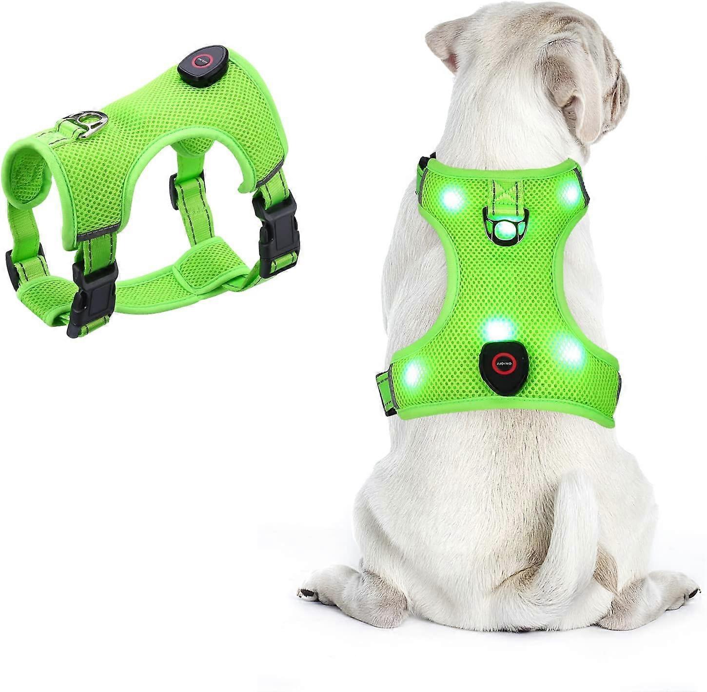 LED Dog Harness AMIR Medium No Pull No Choke Pet Harness USB Rechargeable 3 Lighting Modes Adjustable Breathable, Neck: 15.7-21.6", M Size