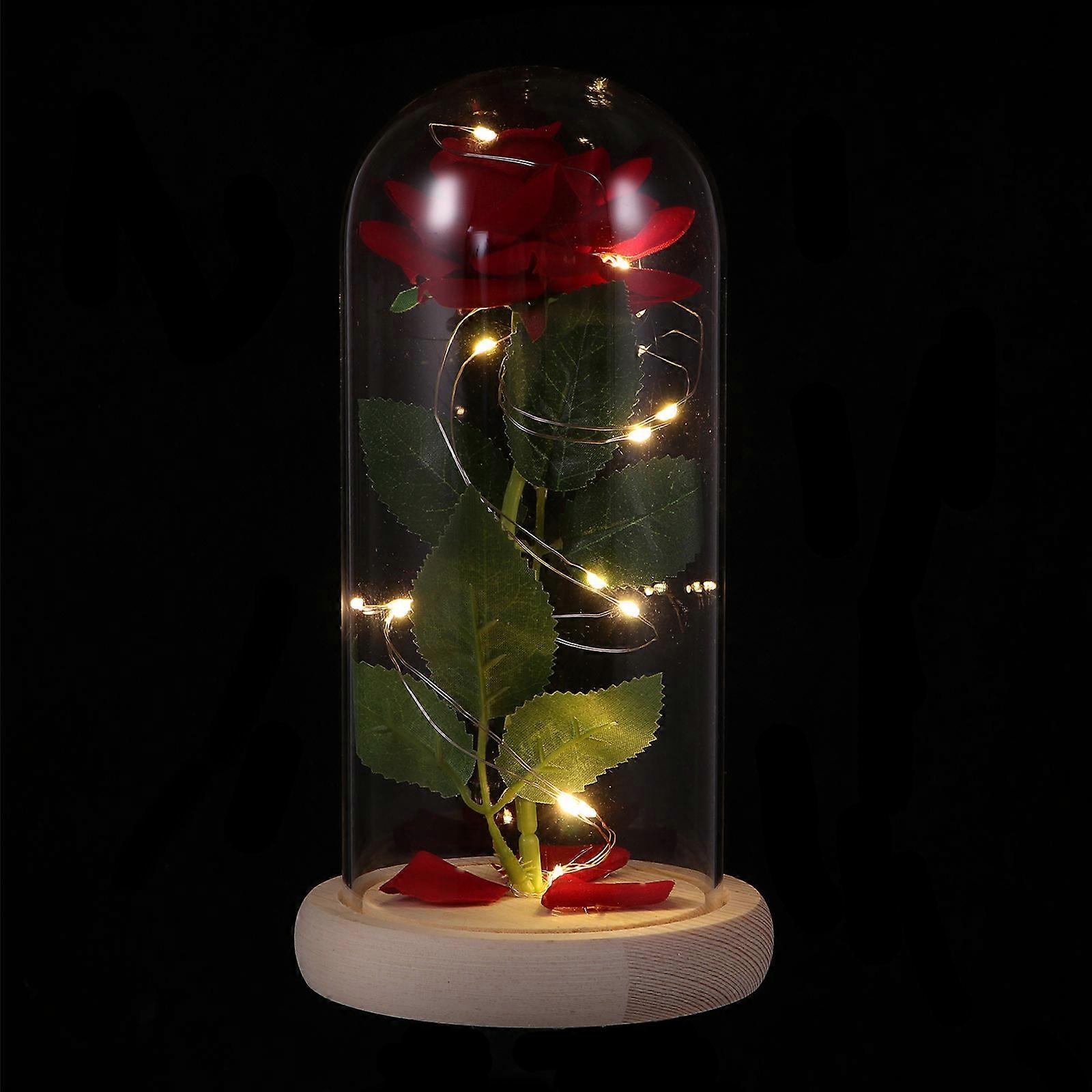 LED Rose Light Simulation Flower Glass Dome for Decoration 1Pcs