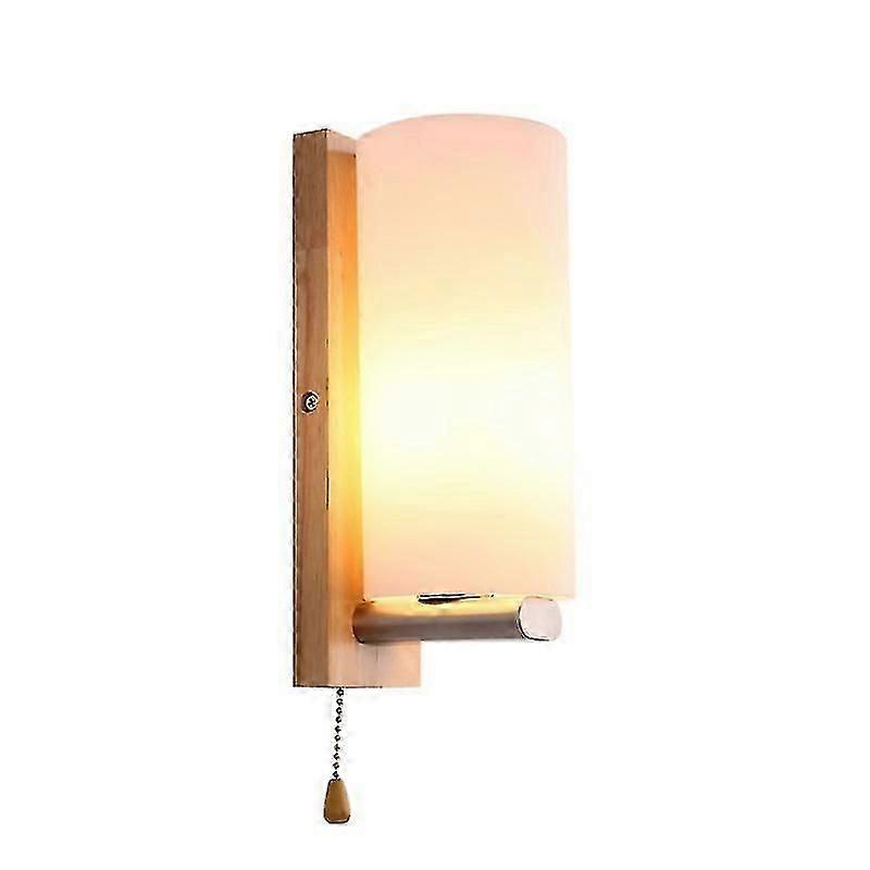 LED Bedroom Bedside Lamp Wall Lamp Solid Wood Glass Creative Aisle Wall Lamp Modern Living Room Wall Light Fixture with Pull Switch lucky