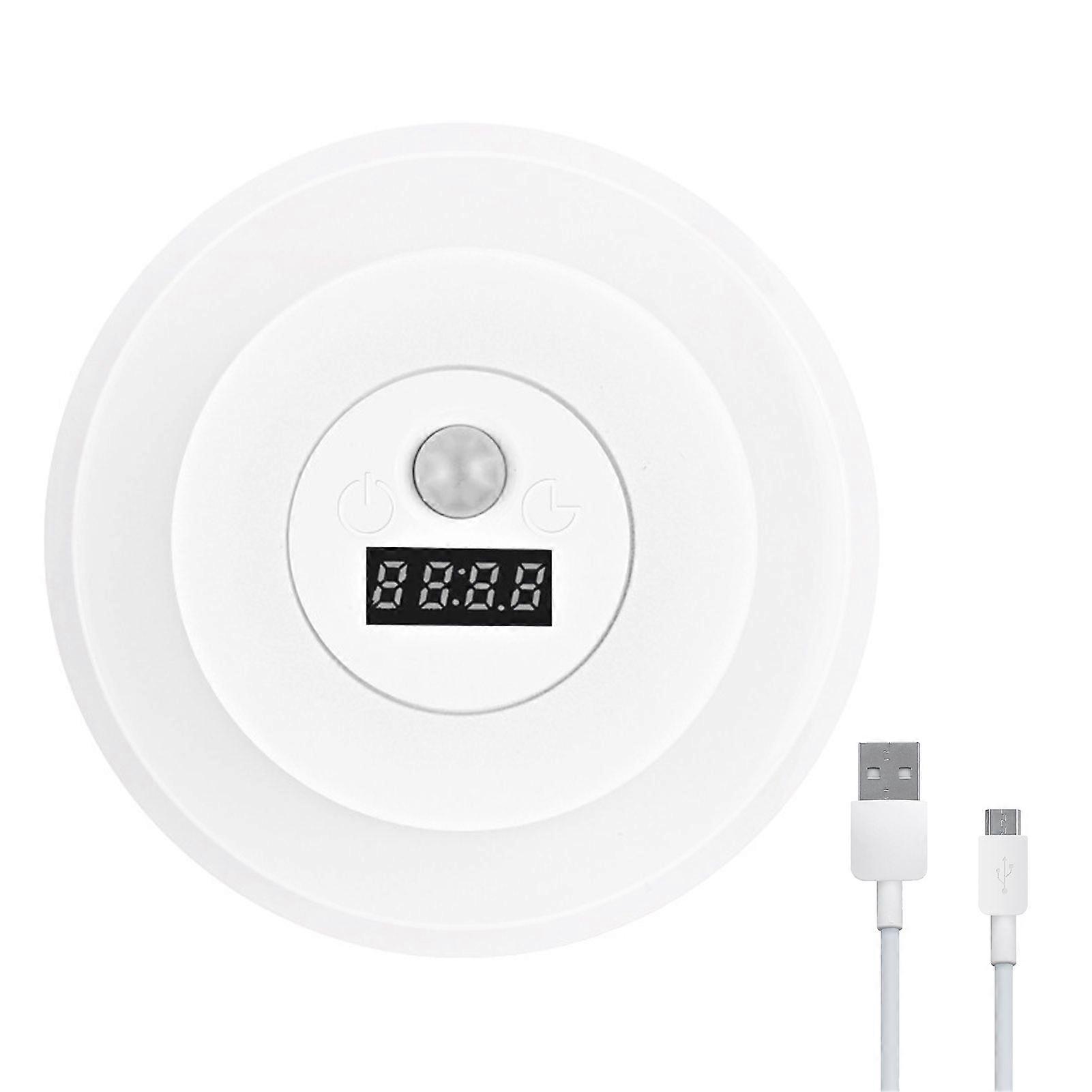 Easily set the clock with a simple press and hold of the power button, ensuring precise time accuracy for all users. Customize your ambiance with three color temperatures (white, yellow, neutral) and stepless dimming features, perfect for creating the ideal atmosphere in any room. Enjoy hands-free convenience with day and night sensor modes that detect your presence and automatically turn off after 30 seconds, promoting energy efficiency and enhancing user experience. This modern wall lamp doubles as a clock and nightlight, offering independent side lighting and main lights control, making it suitable for bedrooms, living rooms, and offices. Stay informed about battery status with the red light indicating charging and green light signaling full charge, allowing quick 1-2 hour charging for uninterrupted use. Item Name: Night Light Material: Acrylic Rated Power: 1.5W Rated Voltage: DC5V Current: 1A Features: Soft Glow, Easy to Use, Practical Size Details: Diameter: 11cm/4.33" (Approx.) Thickness: 3.3cm/1.3" (Approx.) Notes: Due to the light and screen setting difference, the item's color may be slightly different from the pictures. Please allow slight dimension difference due to different manual measurement. Package Includes: 1 x Night Light 1 x Charging Cable