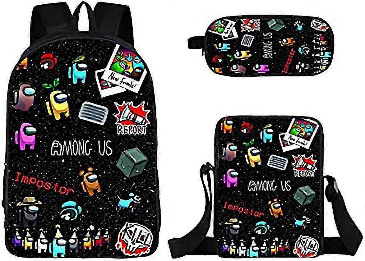 Lelesta 3Pcs Game Printing Among Us Backpack Boys with Lunch Bag Pencil Case Kids School Bags Student Bookbag for Girls Teens Game Fans Gifts